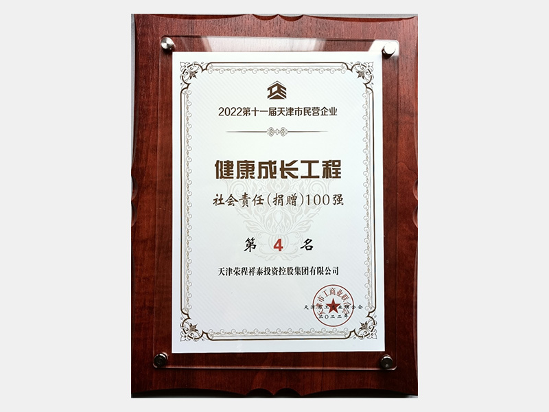 2022第十一屆天津市民營企業(yè)健康成長工程社會(huì)責(zé)任(捐贈(zèng))100強(qiáng)第4名