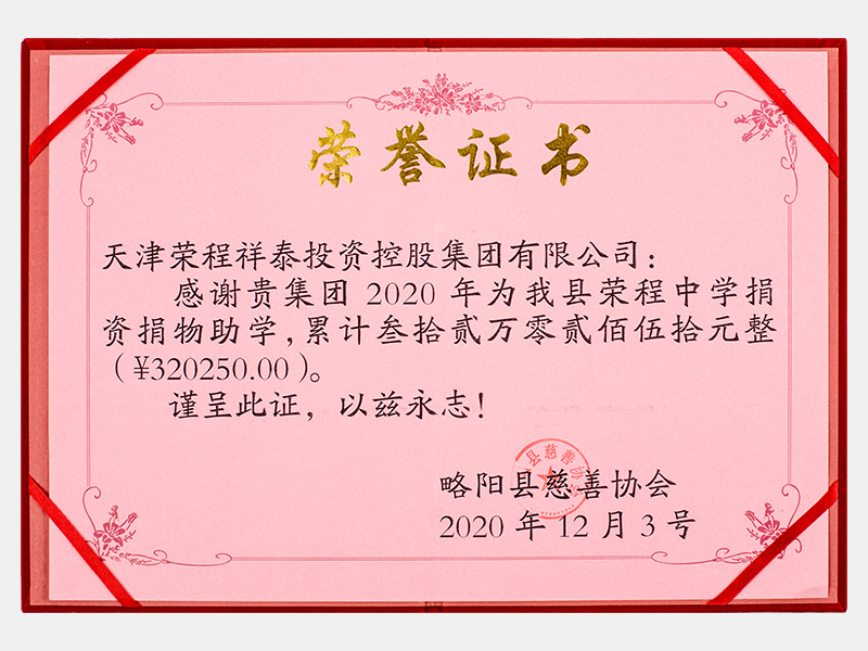 2020年為我縣榮程中學捐資捐物助學累計叁拾貳萬零貳佰伍拾元整(320250元)