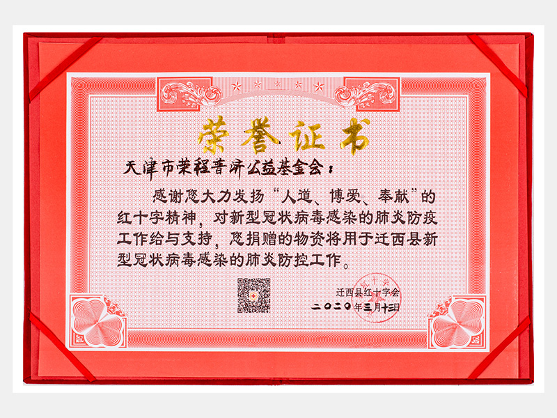 “人道、博愛(ài)、奉獻(xiàn)”紅十字精神-防疫物資捐贈(zèng)感謝證書(shū)