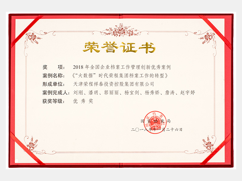2018年全國企業(yè)檔案工作管理創(chuàng)新優(yōu)秀案例優(yōu)秀獎(jiǎng)